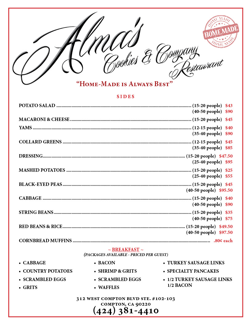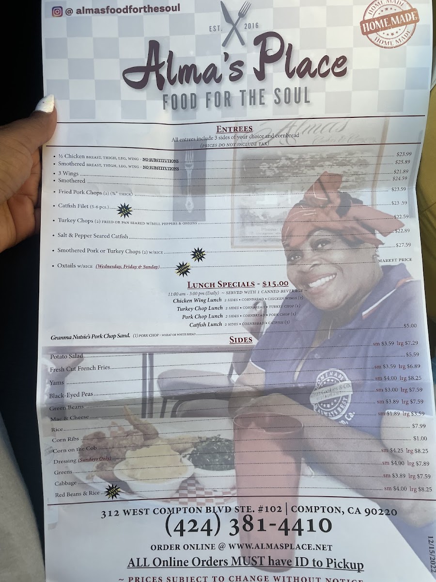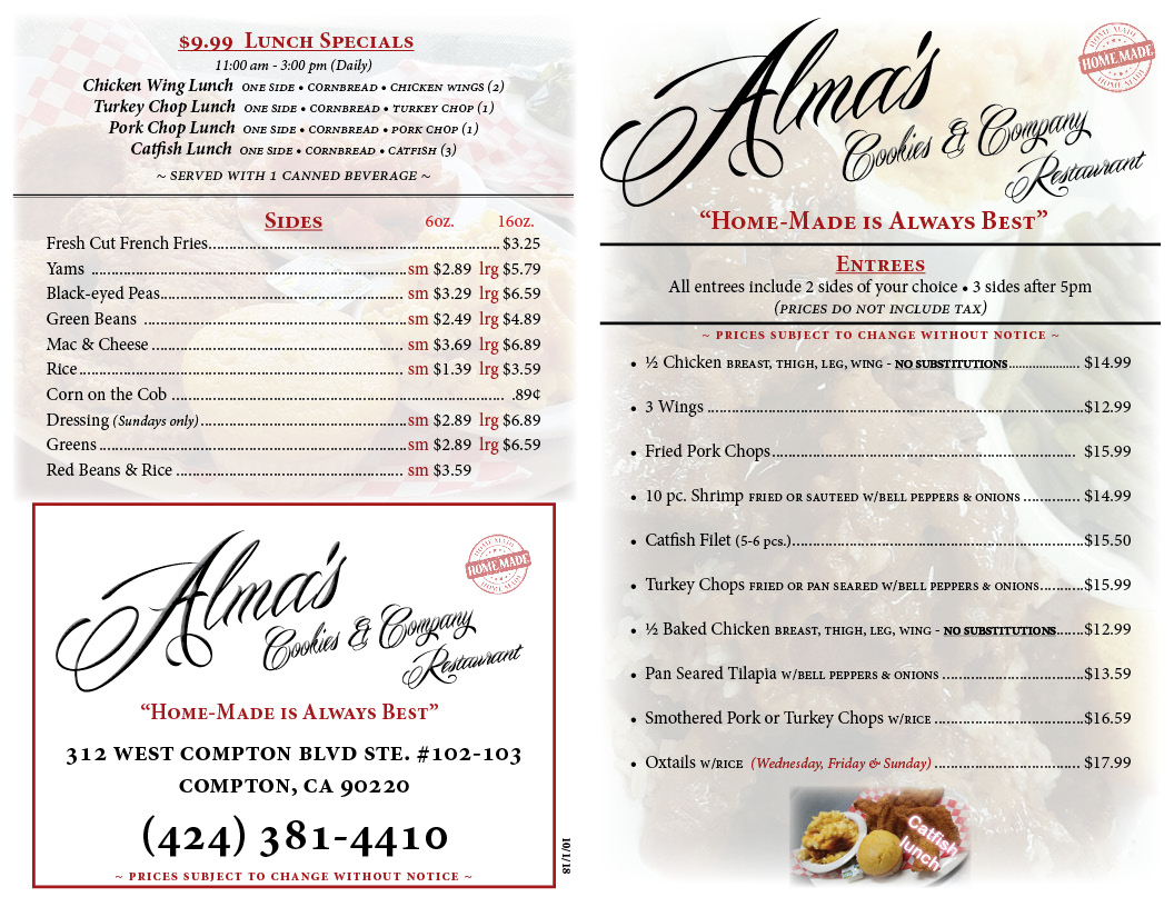 Welcome to Alma's Place, a delightful soul food restaurant nestled at 312 W Compton Blvd Suite #102 in Compton, CA. This charming eatery is a beacon for lovers of rich, hearty Southern cuisine and offers an authentic taste of comfort food that warms both the heart and soul.